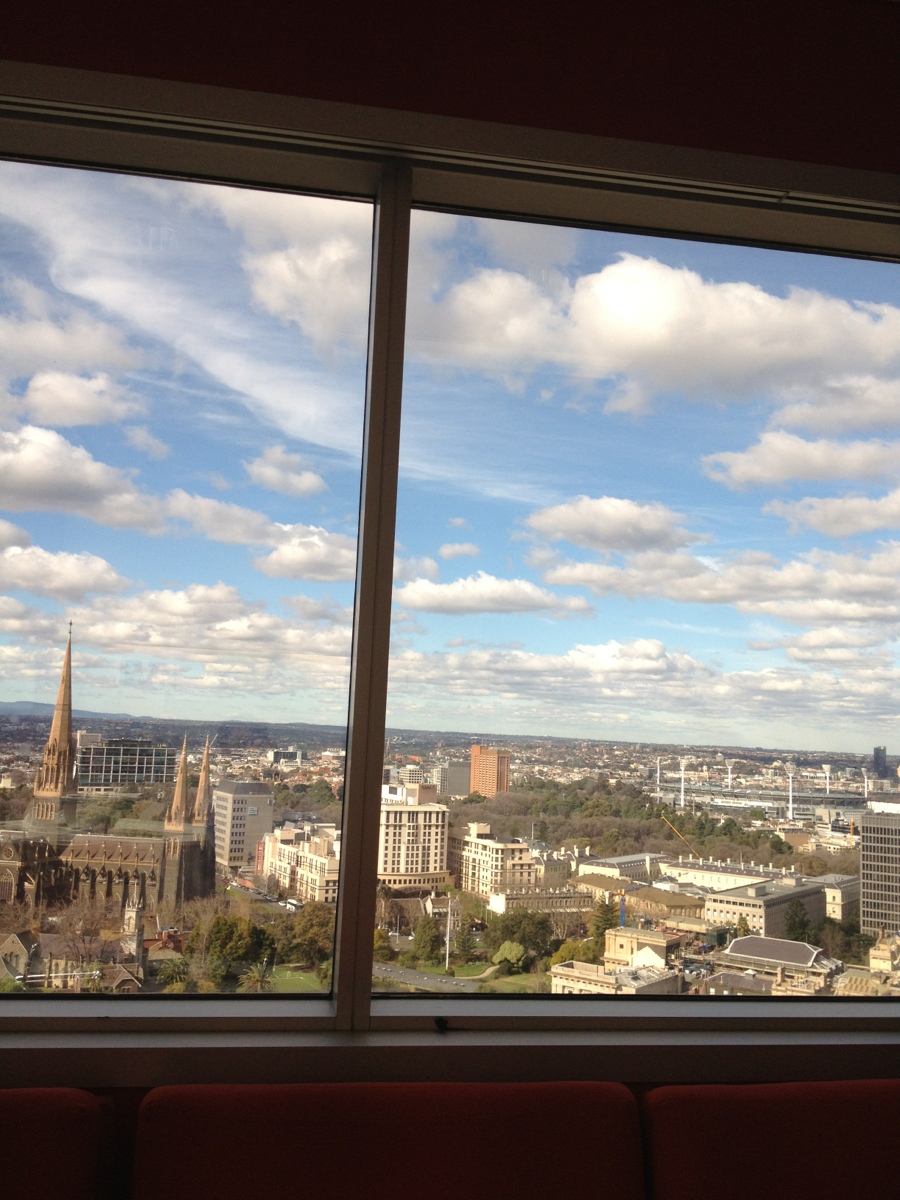 Fantastic view of iconic venues of Melbourne from the staff lunch room. MCG on the right and St Patrick cathedral on the left.